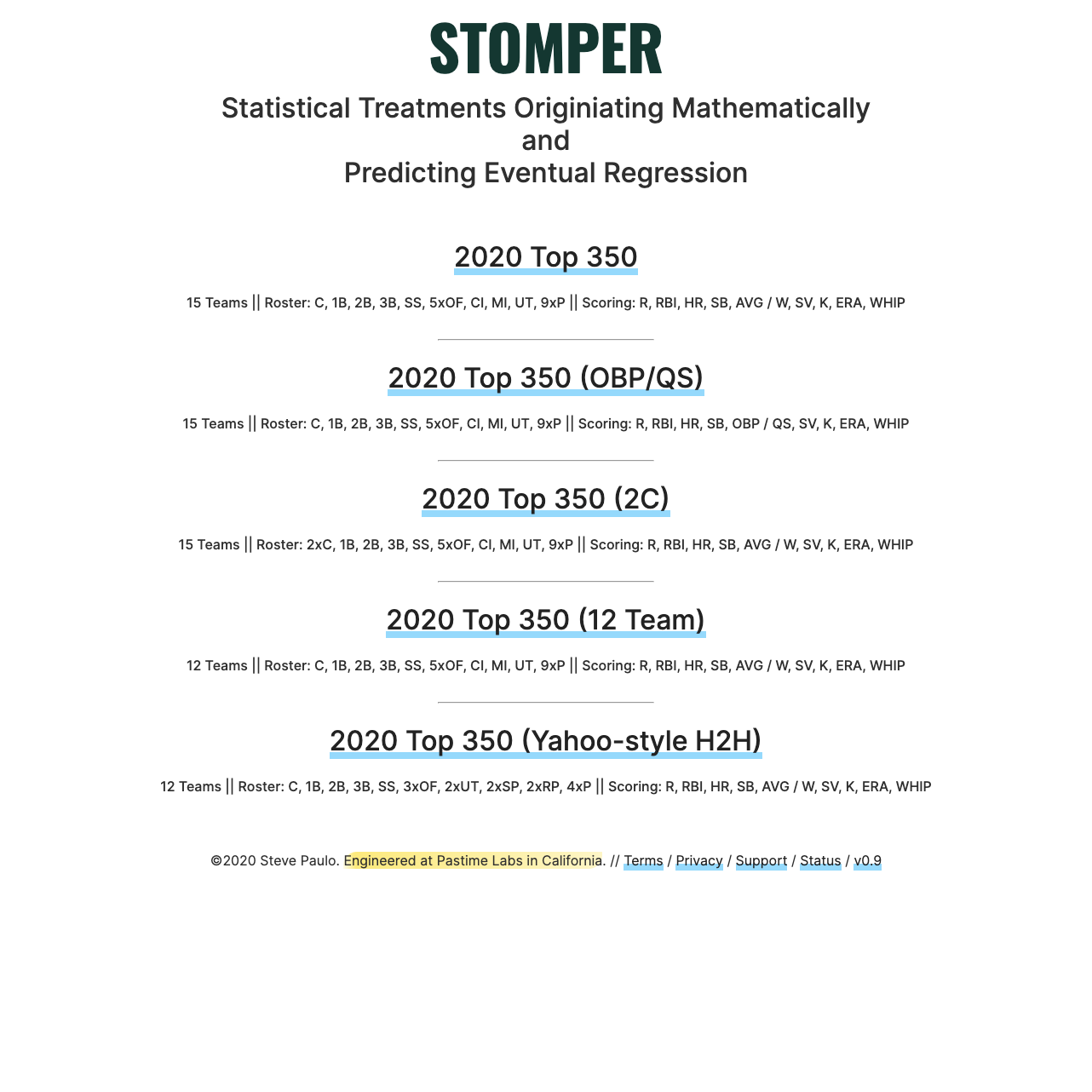 STOMPER is Pastime Labs' first attempt at player-level statistical modeling. Using linear regression, aging curves, and other tools, STOMPER attempts to project with relative confidence the individual performances of every player in Major League Baseball.